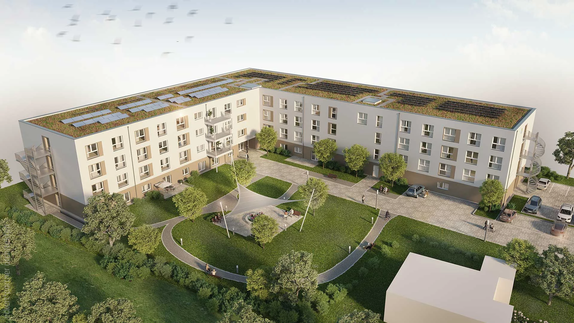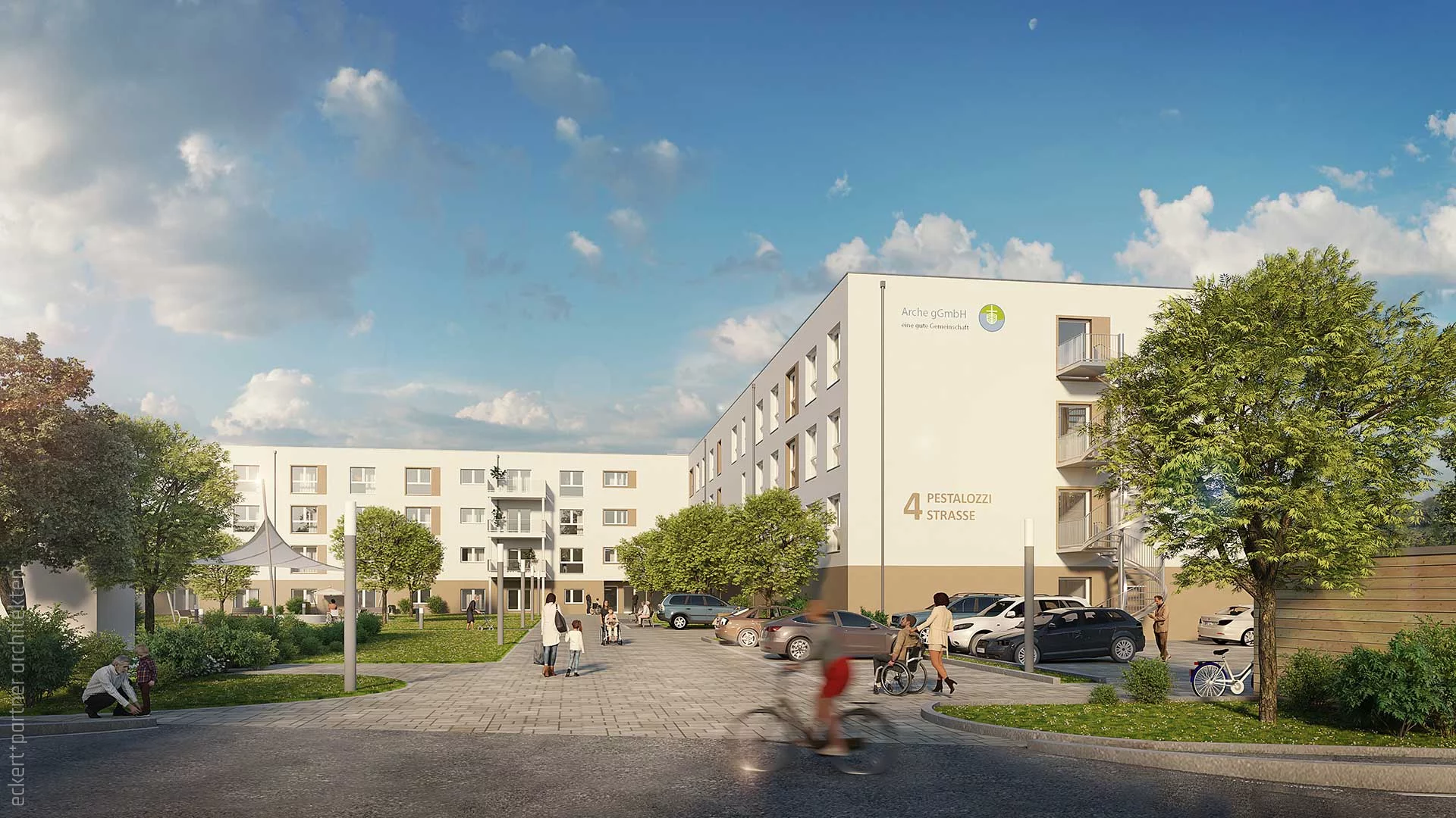 Neubau von70 Einheiten Pflege2 Wohngruppen Kinderpflege mit je 6 Einheiten10 Appartements für Mitarbeiter20 Appartements/Wohnungen24 Appartments für Auszubildende/Berufseinsteiger